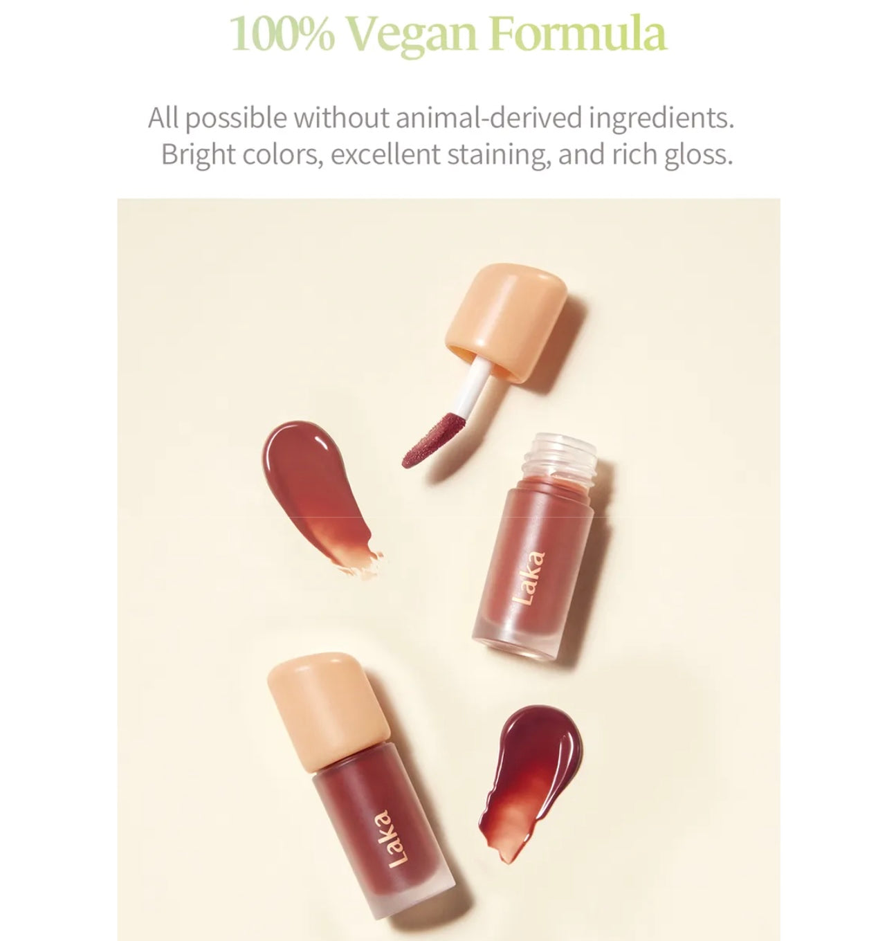 The Laka Fruity Glam Tint Mini Duo Special Set is a curated K-beauty lip tint duo featuring two bestselling shades in adorable mini sizes. Formulated with a juicy, water-gloss tint texture, these tints deliver vibrant fruity color with a dewy, glass-like shine without stickiness. Packed with hydrating ingredients, each tint melts into the lips to create a plump, fresh, youthful look.