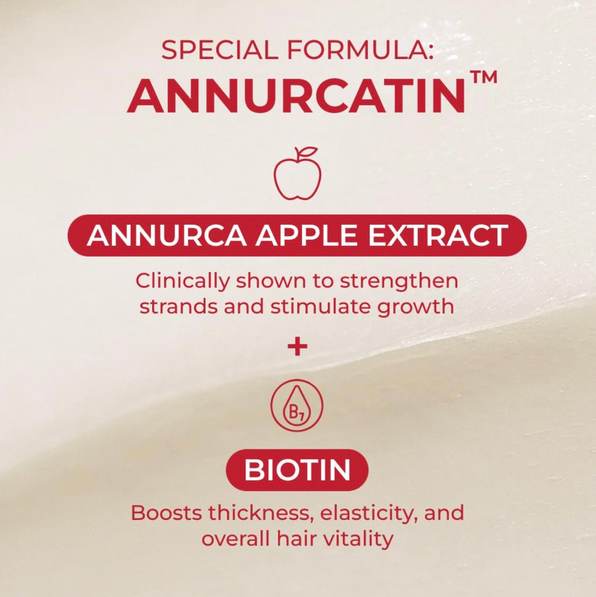 Key Ingredient — Annurca Apple Extract, Biotin, 7 Plant-based Oils, 29 Types of Proteins